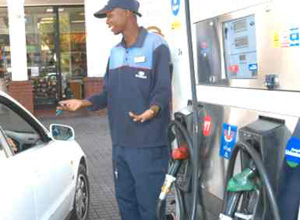 Running Dry: a petrol attendant is forced to turn a motorist away.
