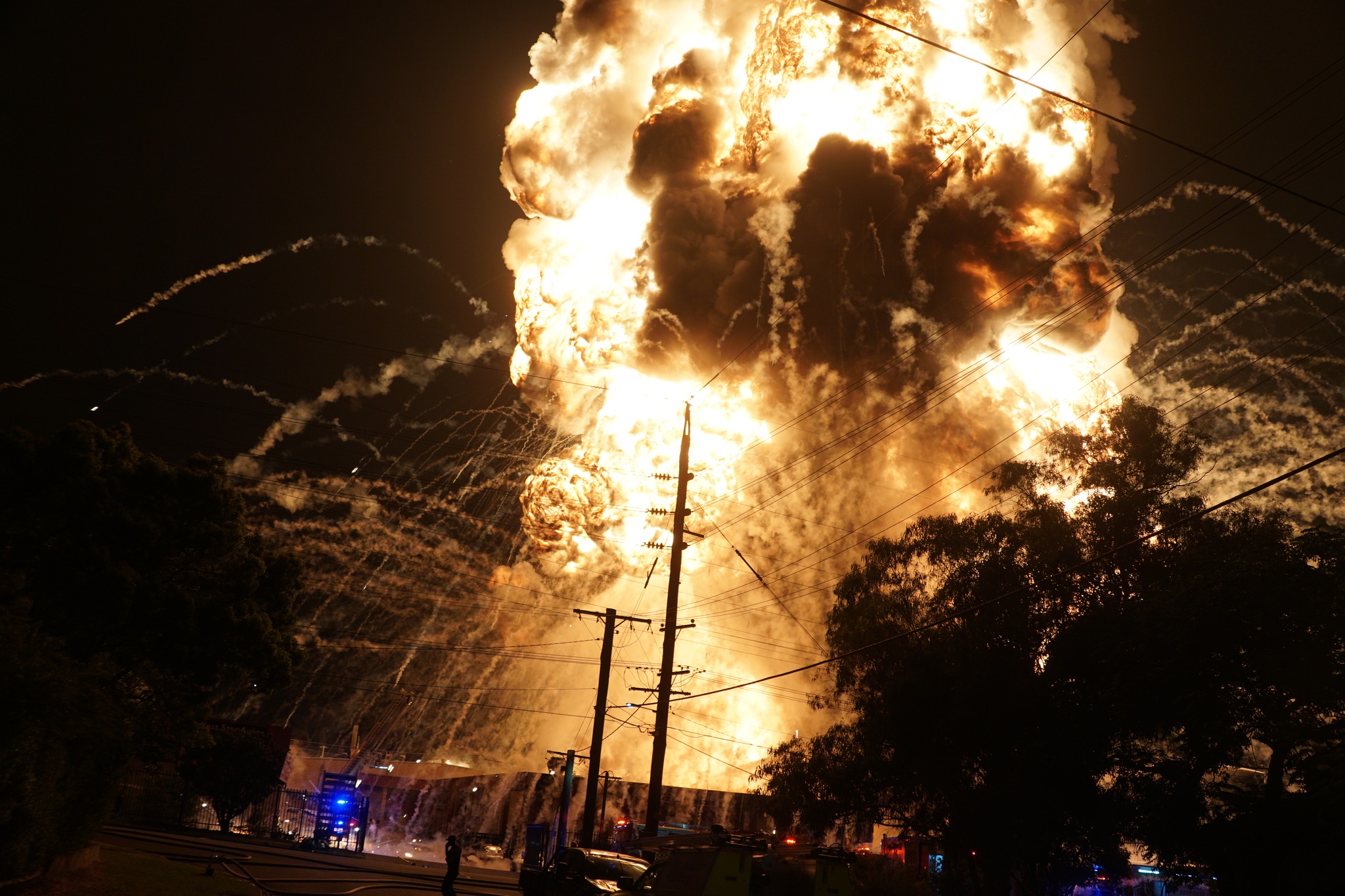 Burning chemicals are expected to keep parts of the site smouldering for many hours or possibly days.