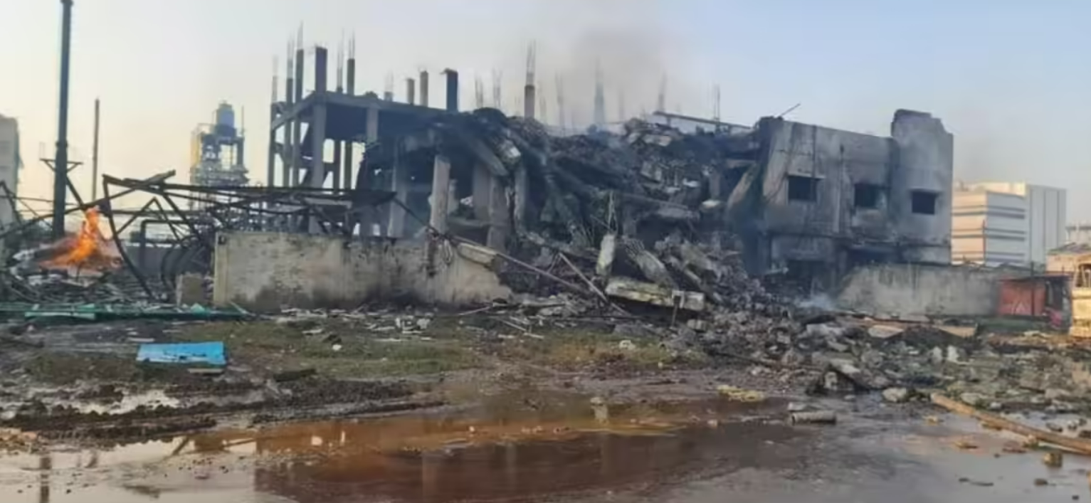 The blast, which is believed to have occurred in a reactor during chemical processing, triggered a massive fire that destroyed the entire factory building. At the time, six laborers were on the night shift at the unit, which produces active pharmaceutical ingredients (APIs) and bulk drug intermediates. Several employees from neighboring units were also affected.